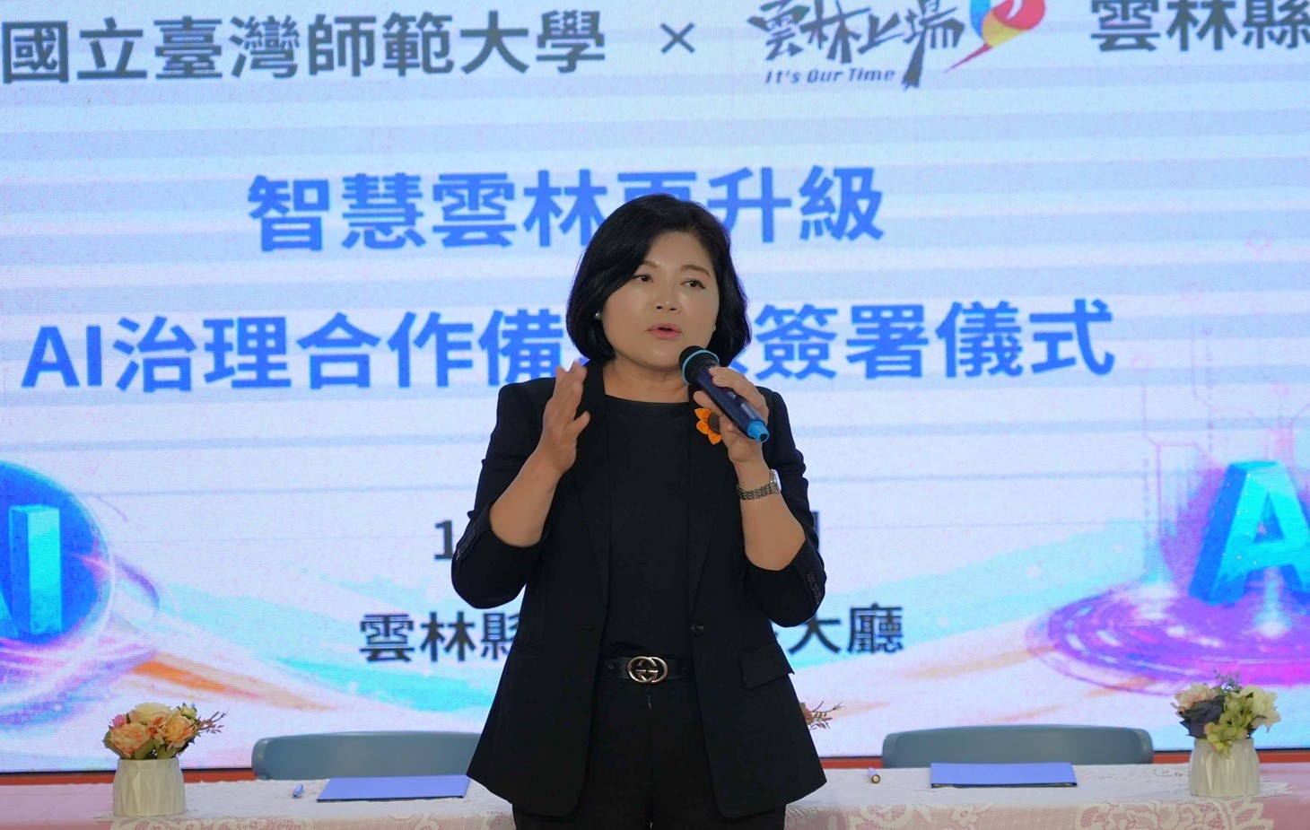 【記者蘇峯毅/雲林報導】雲林縣政府日前於縣府親民廣場舉辦「臺師大×雲林縣政府AI治理合作備忘錄(MOU)」簽署記者會,由縣長張麗善與國立臺灣師範大學校長宋曜廷代表雙方簽署,宣示攜手推動人工智慧(AI)治理與智慧行政發展,深化AI技術於公共治理與行政服務的應用,打造更高效、透明且具前瞻性的智慧政府。