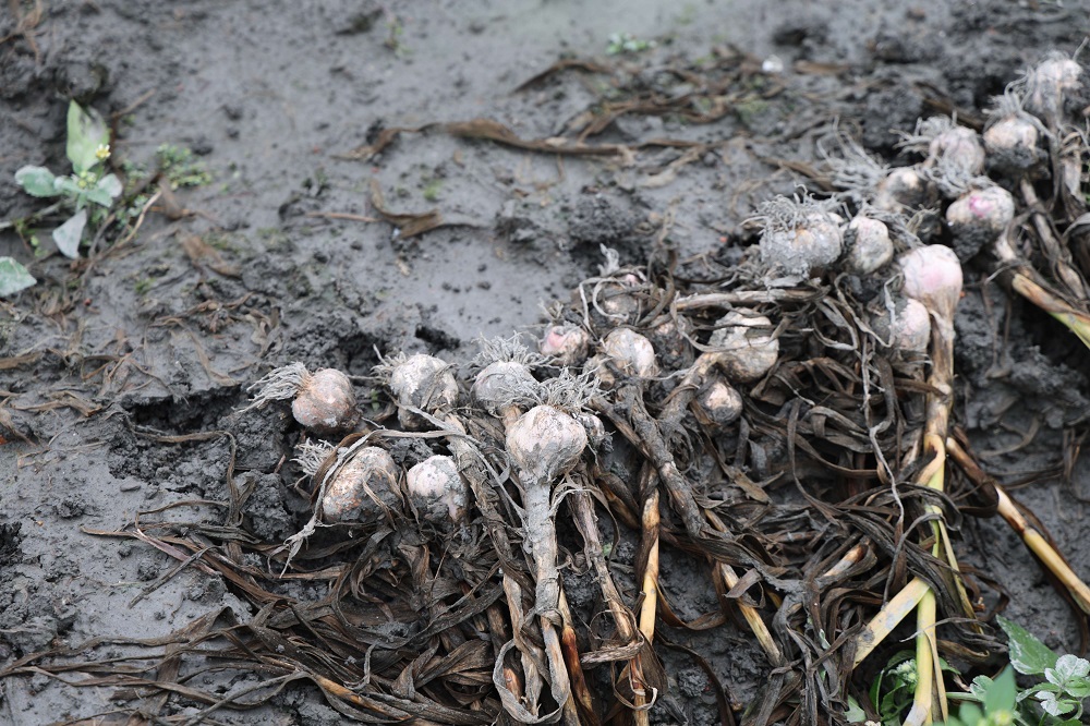 【記者 蘇峯毅/雲林 報導】清明連日豪雨重創雲林縣大蒜產區,多處蒜田積水嚴重,蒜球出現腐爛及開瓣現象,影響農民收益。今(7)日上午,縣府會同四湖鄉公所、農糧署中區分署及台南區農業改良場辦理現地勘災,副縣長謝淑亞呼籲中央儘速啟動天然災害救助,保障農民權益。