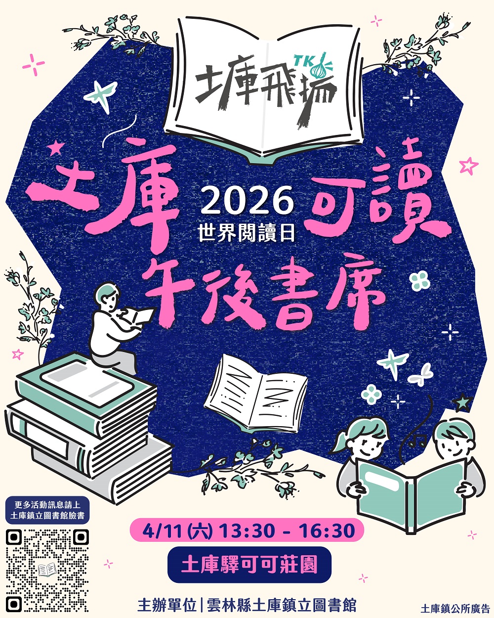 【記者 蘇峯毅/雲林 報導】雲林土庫鎮立圖書館創新閱讀推廣模式,將於4月11日在土庫驛可可莊園舉辦「午後書席」活動,結合在地可可產業與閱讀文化,打造具地方特色的閱讀品牌。