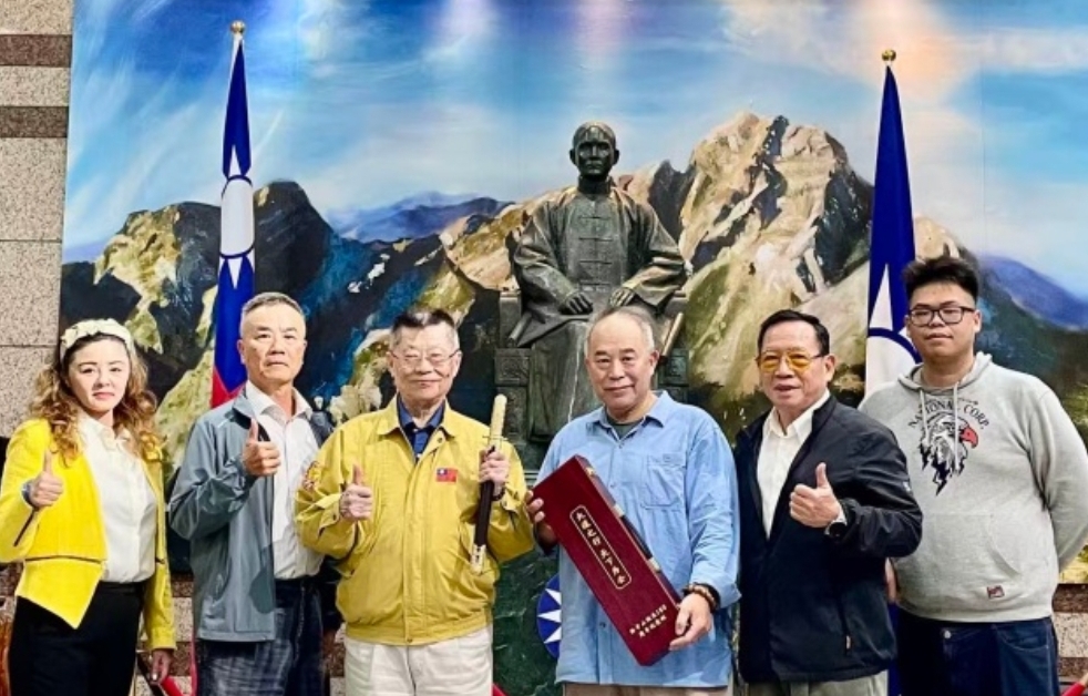 同(4月8)日,榮譽出品限量版“中山紀念劍”,主創團隊負責人、全球粥會總會長、孫中山文化研究中心主任陸炳文博士,則手持著“中山紀念劍”樣品實劍001號,前往國民黨中央黨部,在一樓總理銅像前,舉行簡單莊嚴之寶劍首投緣結吾黨敬獻儀式,亦即粥會扶道人孫中山誕辰160周年紀念系列活動、海峽兩岸重走中山路起手式之延伸行動。