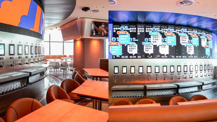 在服務模式上,店內導入所謂「電子酒精交易所」系統,透過動態價格機制與自助取酒設備,讓消費者依需求選擇飲品。業者說明,酒款價格會依取用情形產生變動,藉此增加互動性與消費體驗。此外,部分賽事期間也會搭配即時互動活動,提升現場參與感。