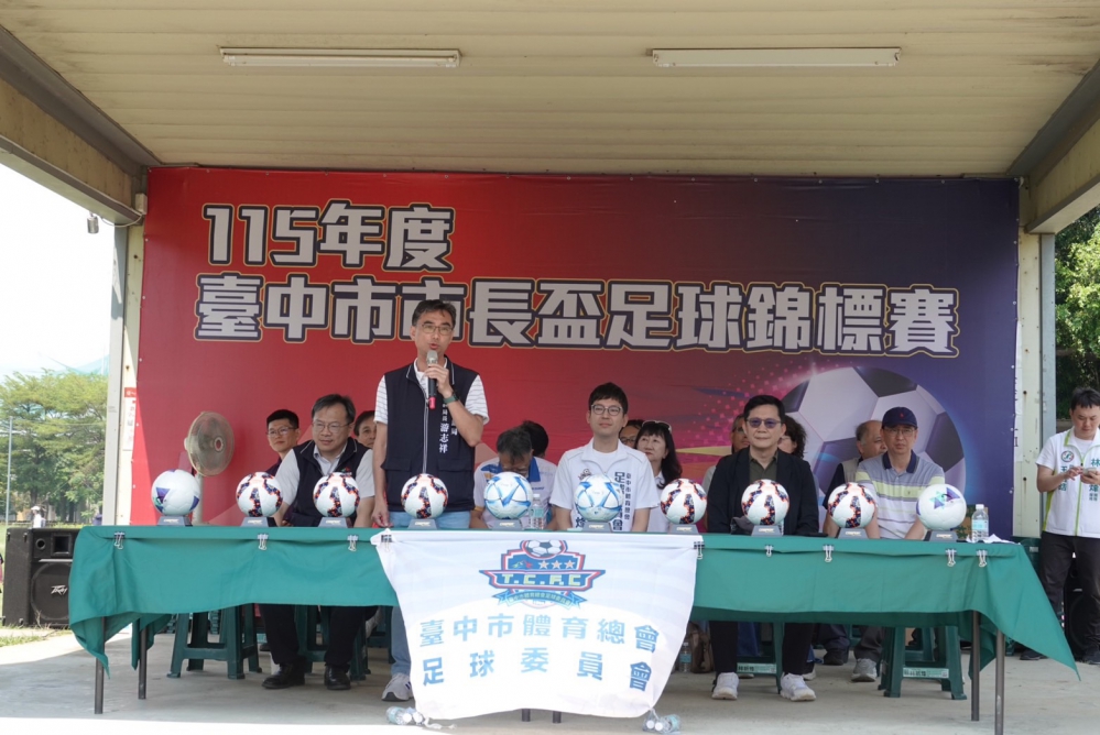 115年台中市市長盃足球錦標賽12日開幕典禮,教育部政務次長張廖萬堅、中市府運動局長游志祥、教育局副局長郭明洲、台中市議員暨台中市體育總會足球委員會主任委員林祈烽、台中市體育總會足球委員會委員蔡永傑、惠文高中校長陳建銘、崇倫國中校長賴朝榮、協和國小校長簡雅雯、國安國小校長謝淵智等均出席活動;立委何欣純亦派員參與共襄盛舉。