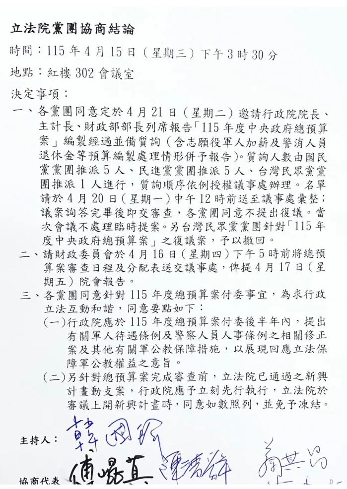 李來希也坦言,此次協商結果顯示,若非在野黨掌握預算審查的關鍵權力,執政黨是否會做出調整,仍有高度疑問。