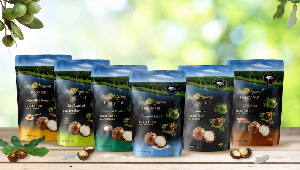 ▲澳洲頂級堅果品牌HappyNut正式進軍台灣,全系列商品於聖德科斯、新光三越、誠品等實體門市,以及PChome、蝦皮商城等線上通路開賣。