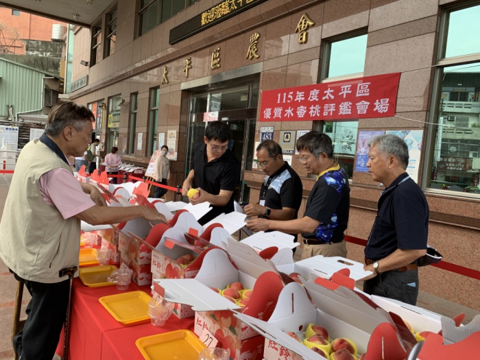 【記者林重鎣台中報導】台中市政府農業局輔導太平區農會於22日在該會舉辦「115年度台中市太平區優質水蜜桃果品評鑑活動」,推廣台中優質水蜜桃,提升平地水蜜桃果品品質,此次評鑑共31組農友報名參賽,並由農友柯聰明勇奪冠軍,成為今年度的平地水蜜桃達人。